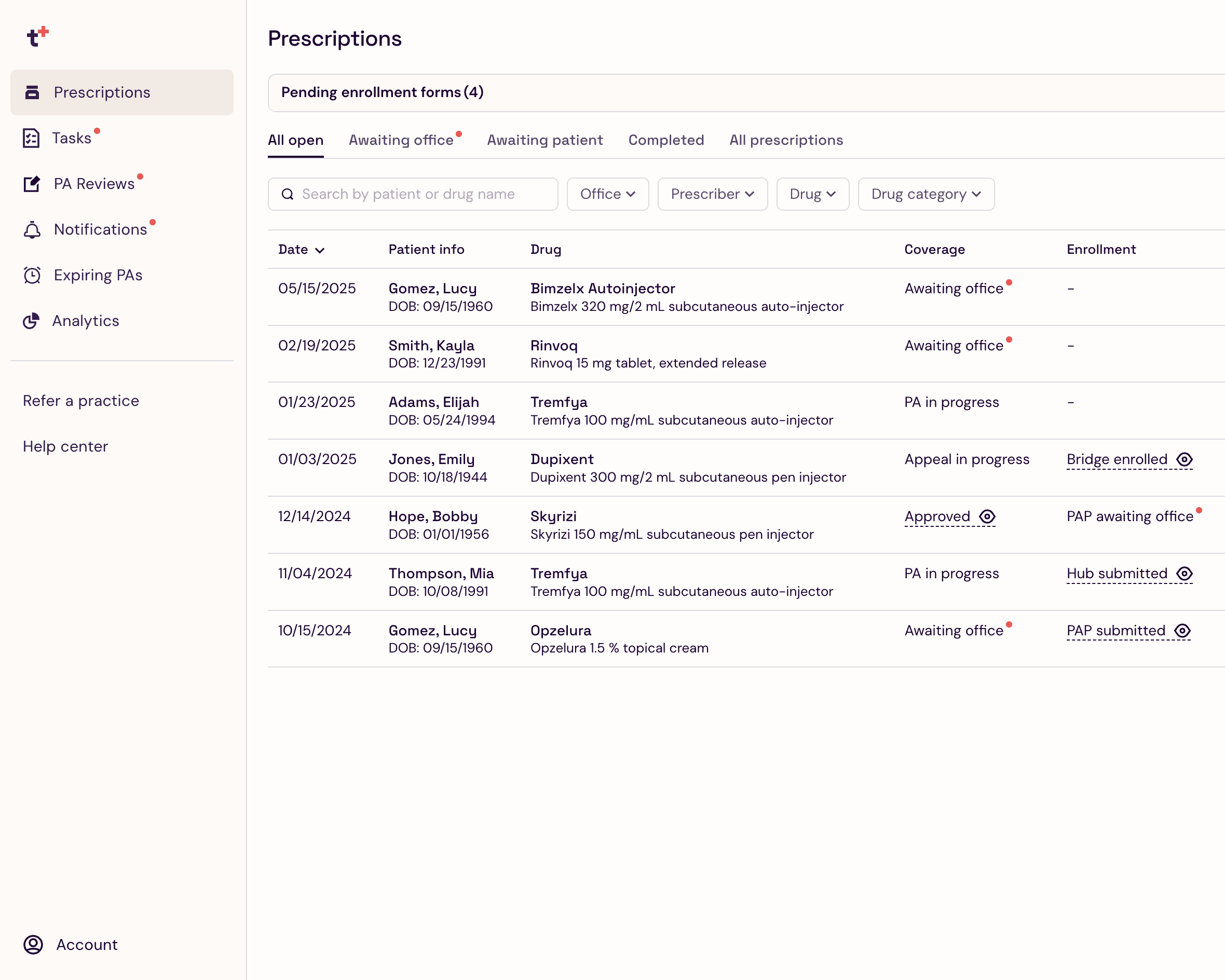From PA generation to appeals, enrollments, & pharmacy navigation, Tandem handles the end-to-end medication access process.